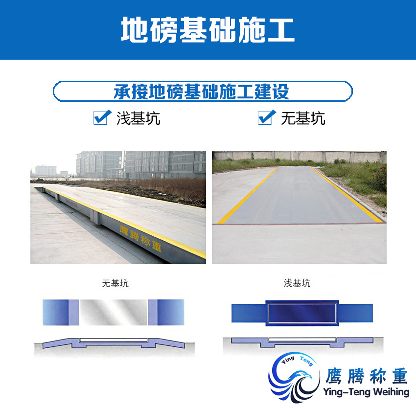 基礎的施工位置應有良好的排水通道,安裝的位置不能低于四周,否則會因地勢低,下雨時造成積水,淹沒地磅,損壞傳感器。對于淺基坑更應設置排水通道。另外兩端有足夠長度的平直路供汽車上下稱臺,兩端直道要至少等于稱臺長度。
